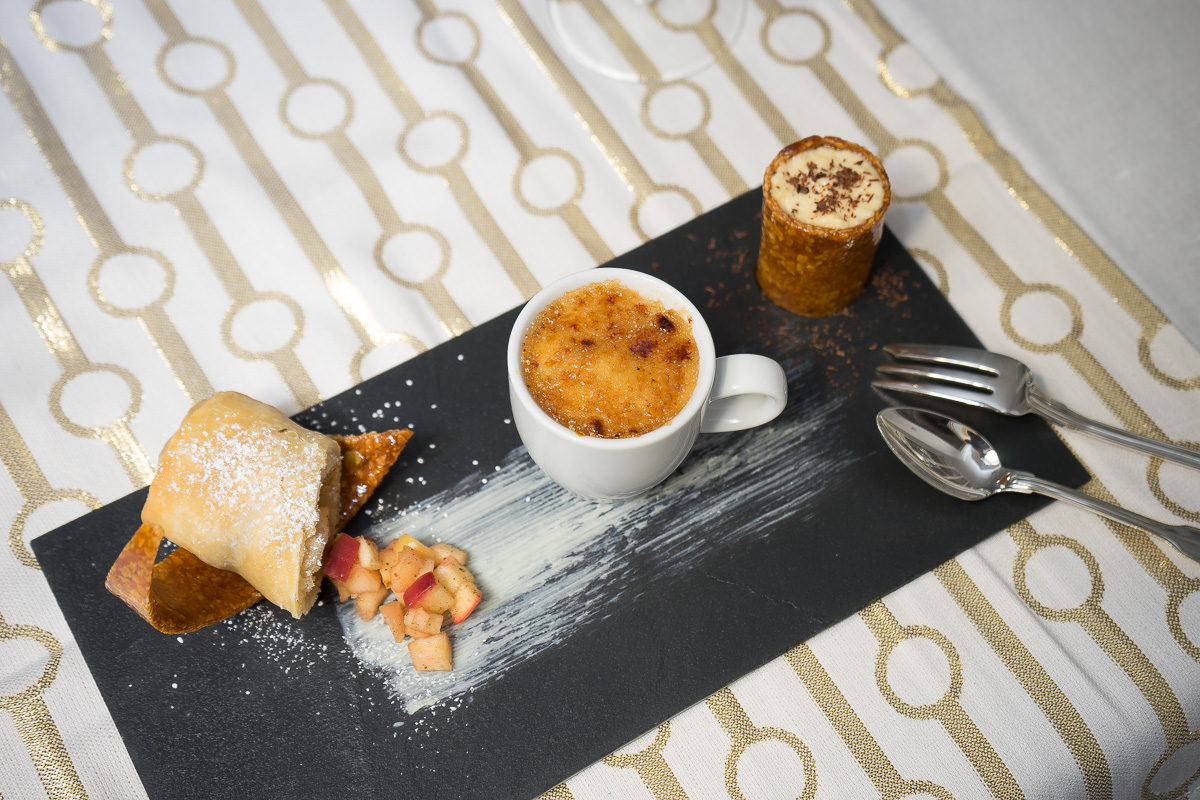 Dessertvariation: Mini Apfelstrudel, Crème brûlée und Bailey´s crème