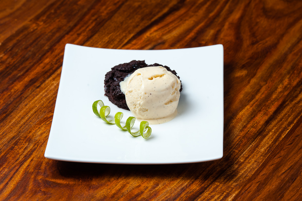 Schokoladen-Cranberry Brownie mit Vanille Eis